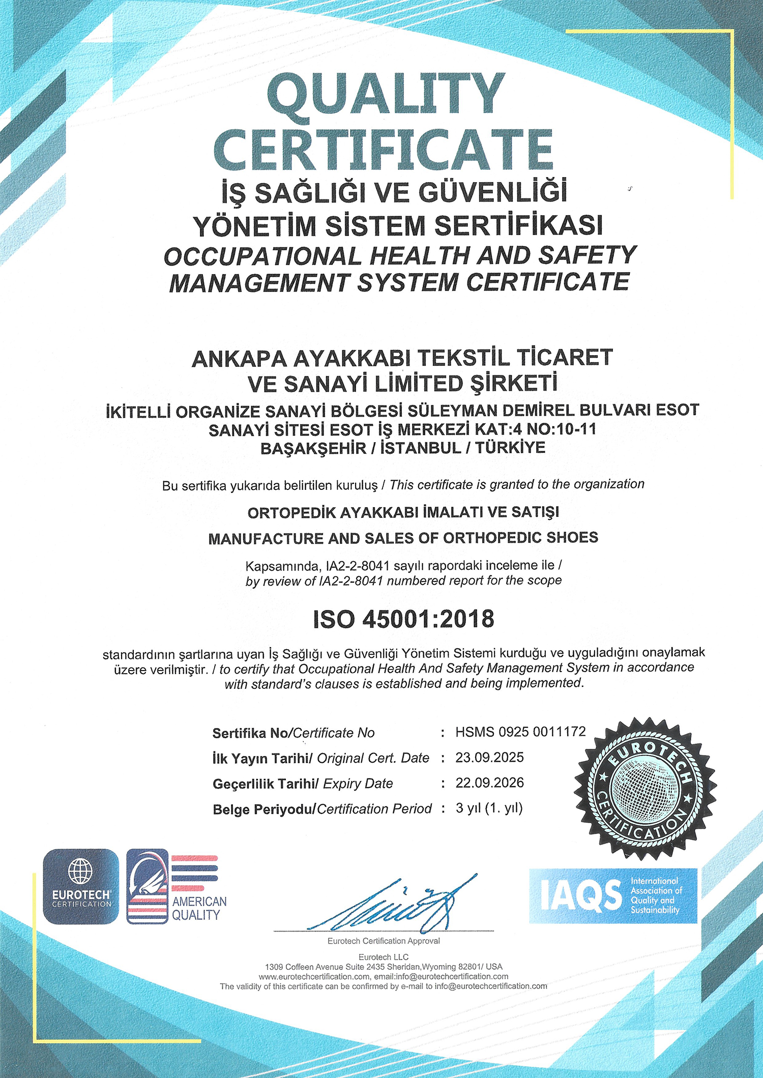 İş Sağlığı ve Güvenliği Yönetim Sistemi Sertifikası
